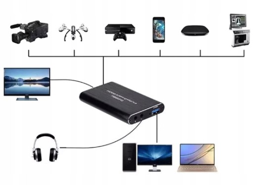 Obraz przesyłany poprzez złącze HDMI z kamery, aparatu, konsoli do gier, komputera a nawet smartfona może być przekazywany dalej do dowolnego ekranu, wyświetlacza lub innego odbiornika HDMI i jednocześnie nagrywany za pomocą szybkiego złącza USB 3.0 na dowolnym urządzeniu, np. komputerze lub smartfonie.
