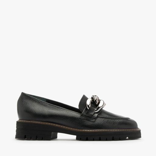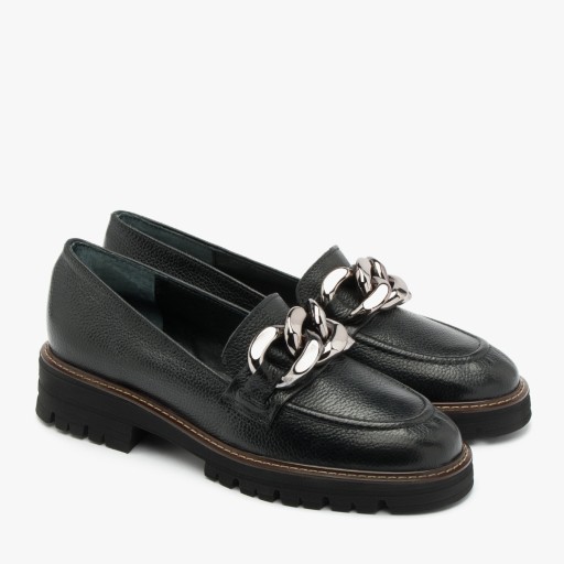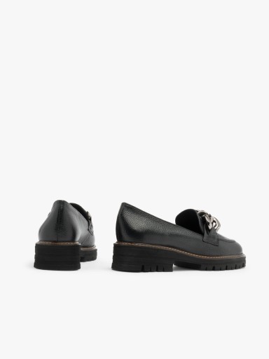 Czarny mokasyn z ozdobnym łańcuchem z linii RYŁKO.
