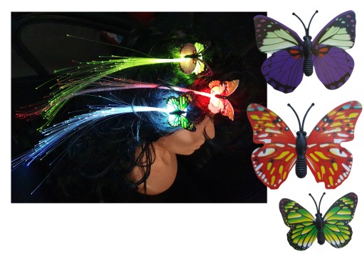 Świecące spinki z światłowodowym włosem.