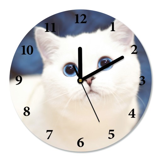 Часы настенные бесшумные БЕЛЫЙ КОШКА ГОЛУБЫЕ ГЛАЗА диам.