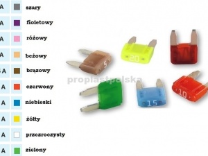 Przedmiotem sprzedaży jest 10 sztuk bezpieczników samochodowych płytkowych MINI. Producent: hiszpańska firma Sertronic.