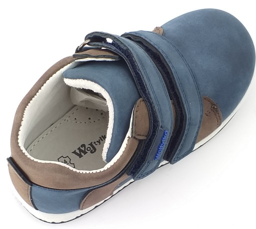 TRZEWIKI FIRMY WOJTYŁKO HIT TEGO SEZONU. Wnętrze buta- podszewka, wkładka - skóra naturalna. Kołnierz z miękkim wypełnieniem. Miękka, skórzana wkładka. Zapięcie na dwa rzepy. Usztywnione zapiętki. Wygodna, elastyczna podeszwa.