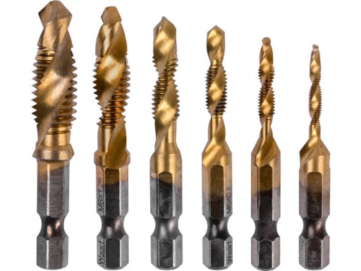 Zestaw wierteł do gwintowania z uchwytem do klasycznej wkrętarki/wiertarki, który z łatwością pomoże wykonać gwint w wielu materiałach