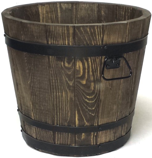 Donica posiada otwór drenażowy w grubym dnie z drewna sosnowego.