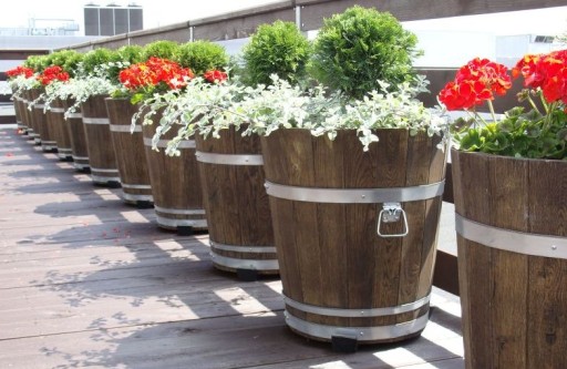 Grube dno drewniane z otworami drenażowymi gwarantuje prawidłowy rozwój roślin. Produkowane przez nas donice drewniane można obsadzać bezpośrednio z ziemią.