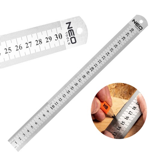 Przymiar liniowy 30 cm, stal nierdzewna 72-213 NEO to praktyczne narzędzie, niezbędne w każdym warsztacie. Wykonane z wysokiej jakości stali nierdzewnej o długości 30 cm. Linijka jest podstawowym przyrządem do pomiaru długości, wykorzystywanym często na budowie. Charakteryzuje się wysoką trwałością oraz nie zajmuje dużo miejsca. Znajdujący się na jednym z końców otwór, umożliwia zawieszenie jej na tablicy warsztatowej, aby była dostępna pod ręką. Przymiar przydatny jest w pracy oraz zadaniach stolarza, ślusarza oraz majsterkowicza.