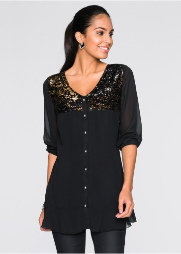 - Z PIĘKNYM PRZODEM WYSZYWANYM ZŁOTYMI I CZARNYMI CEKINAMI