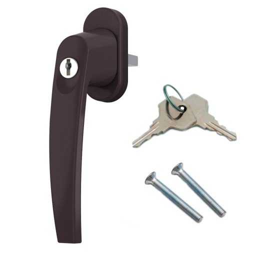 Klamki okienne z kluczykiem, klamkozamek RAL 8019 brązowe, zestaw 10 sztuk