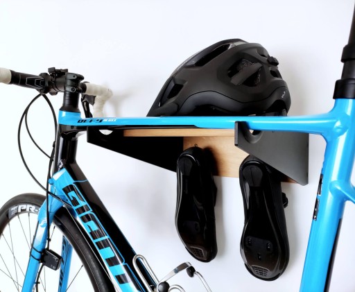 Wieszak zaprojektowany jest tak, aby miejsce miał na nim kask, buty oraz rower w specjalnie wyciętych uchwytach wyłożonych gumą celem zabezpieczenia ramy rowerowej przed ewentualnym uszkodzeniem.