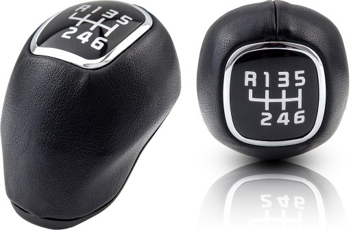 Kolor: gałka skórzana w kolorze czarnym z chromowym pierścieniem i czarnym schematem 6 biegów + wsteczny z lewej.