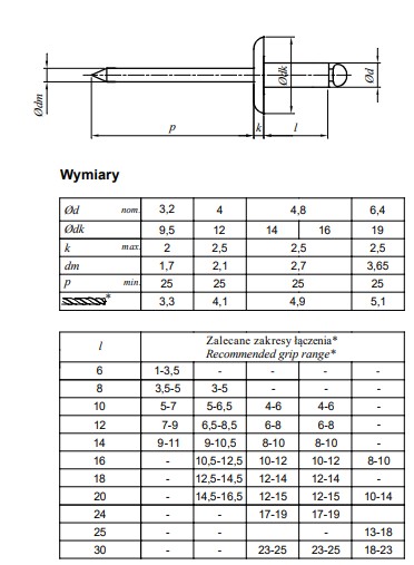 Nit zrywalny z łbem powiększonym stosuje się również w montażu materiałów cienkościennych oraz materiałów podatnych na uszkodzenia i odkształcenia.