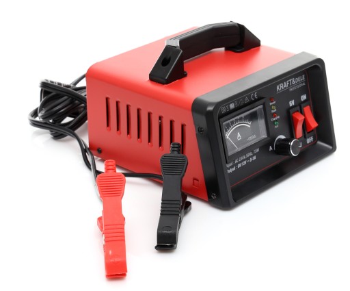 Prostownik KRAFT&DELE o symbolu KD1288 to niezawodne urządzenie służące do ładowania akumulatorów o pojemności od 6 Ah do 75 Ah - idealny do pobudzania mocno rozładowanych akumulatorów. Prostownik wyposażony został w wyświetlacz trybu ładowania, który zabezpiecza urządzenie przed uszkodzeniem. Prosta i solidna budowa zapewnia niezawodność i długowieczność urządzenia. W zestawie wraz z urządzeniem znajdują się przewody z końcówkami typu "krokodylki" oraz przewód zasilający.