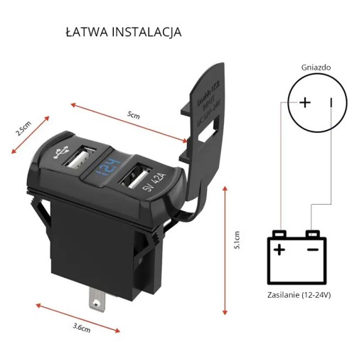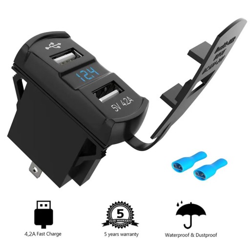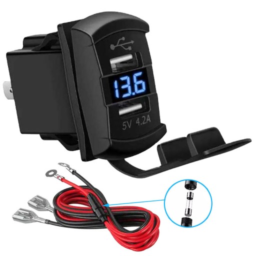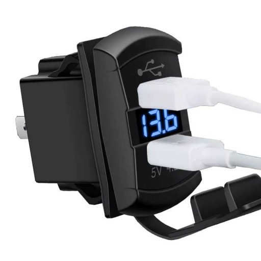 Woltomierz jachtowy z gniazdami USB A, umożliwiający montaż w sąsiedztwie włączników, np: w rozdzielni jachtowej. Szybkie ładowanie QC 3.0, łatwy montaż, podświetlenie Led na kolor niebieski. W komplecie bezpiecznik i wiązka elektryczna o długości 60cm.