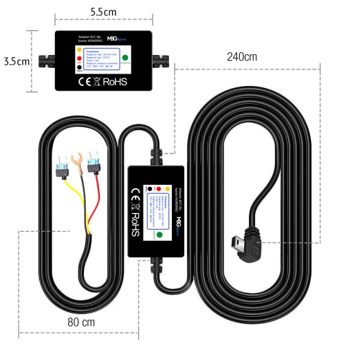 W zestawie poza standardowym zasilaczem do zapalniczki samochodowej znajdziesz również adapter trzy-żyłowy, który pozwoli na wpięcie się na stałe do zasilania samochodu i przekazywanie do rejestratora informacji i zapłonie.