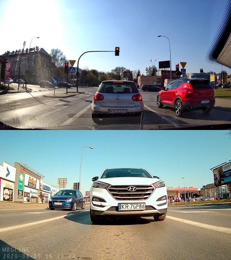 ⚪ obraz z kamery przód na połowie + obraz z kamery tył na połowie