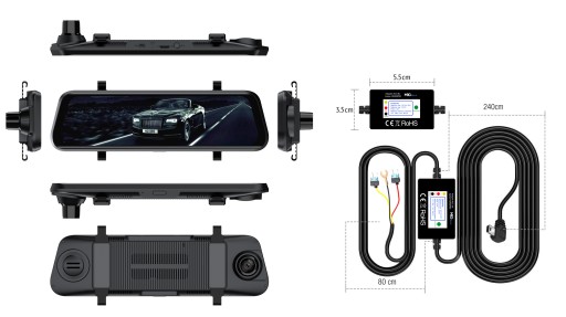 KAMERA SAMOCHODOWA KAMERA COFANIA Z WYŚWIETLACZEM 10’’ REJESTRATIR TRASY LUSTERKO HS900PRO MBG LINE 2K + FULL HD