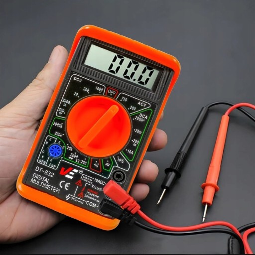 - Multimetr cyfrowy Verke DT832 został zaprojektowany zgodnie z normą EN61010 i charakteryzuje się kategorią pomiarową (przepięciową) CAT I i drugą klasą ochronności.