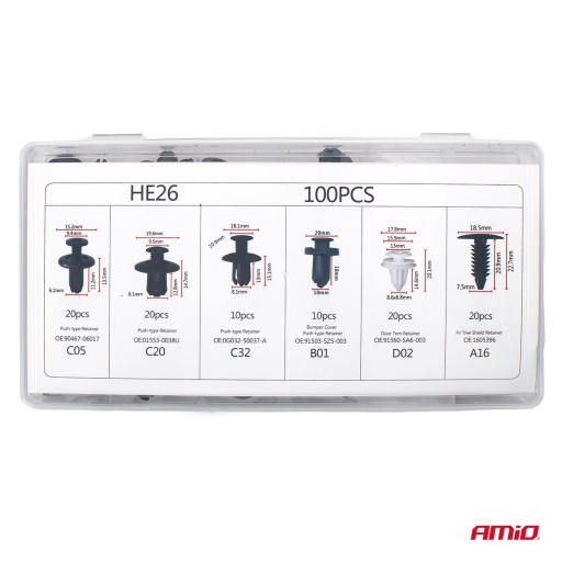 - Zestaw 100 uniwersalnych spinek samochodowych.