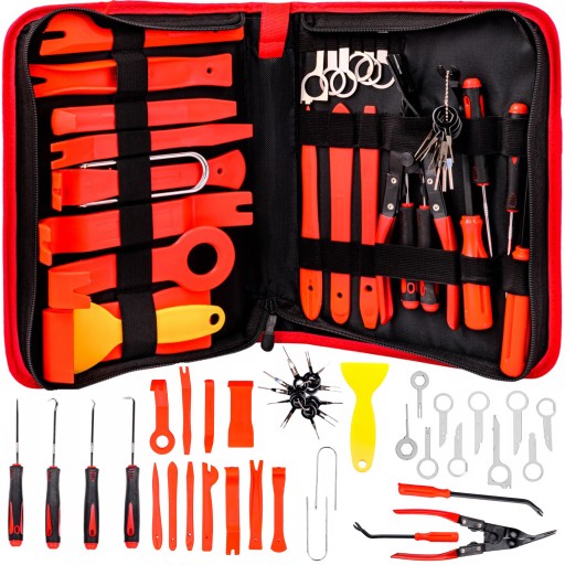 - NIEZAWODNOĆĆ I WYSOKA JAKOŚĆ – zestaw do demontażu tapicerki wyróżnia się wysoką jakością. Ściągacze wykonane zostały z wysokiej jakości materiału, który jest twardy, trwały i odporny na uszkodzenia mechaniczne.