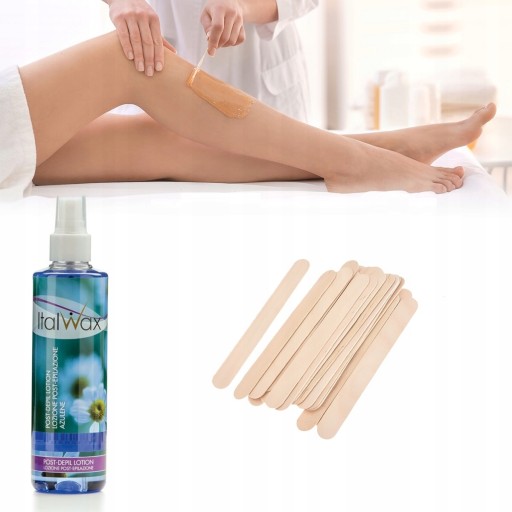 Jednorazowe drewniane szpatułki do nakładania wosku podczas depilacji.