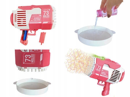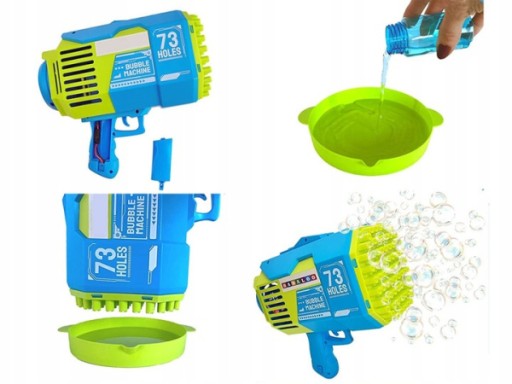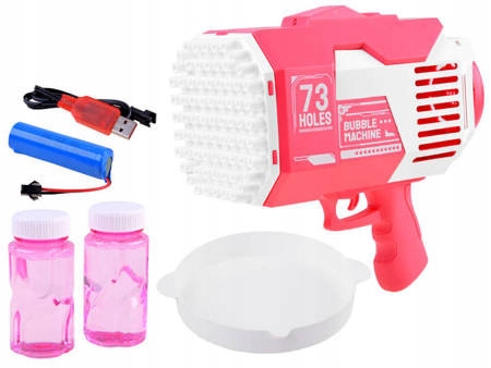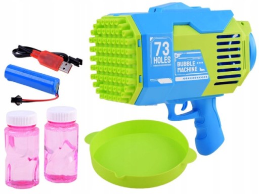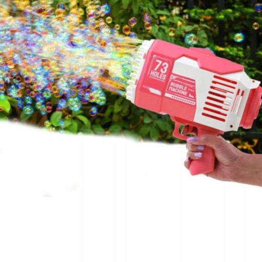 Bańki mydlane to ulubiona zabawa małych i dużych dzieci. Rewelacyjna maszynka do robienia baniek mydlanych w kształcie super bazooki zapewni mnóstwo radości każdemu dziecku. Pistolet do baniek mydlanych jest idealnym prezentem ponieważ jest łatwy w użyciu i zapewnia dużo radości, ponieważ za jednym naciśnięciem spustu z pistoletu wylatuje mnóstwo baniek.
