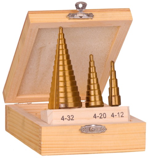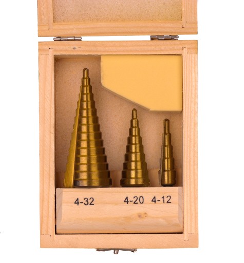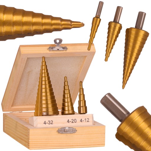 WIERTŁO WIERTŁA STOŻKOWE STOPNIOWE HSS TYTAN 3 el.