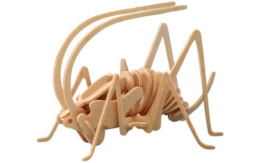 Puzzle drewniane wykonane są z gotowych powycinanych płytek ze sklejki drewnianej pokryte papierem kredowym swoją strukturą zbliżoną do naturalnego wyglądu owada.