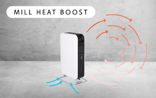 Grzejnik Mill — stylowy, szybki i skuteczny. Sam w sobie jest pięknym elementem wystroju wnętrz, sprawiający wrażenie jakby unosił się nad podłogą. Stylowy grzejnik posiada bezpieczne, zaokrąglone krawędzie i boki, a czarna część środkowa podkreśla smukły, elegancki design. Mill jest bardzo wydajny i zaczyna się nagrzewać natychmiast po włączeniu. Grzejnik doskonale sprawdza się jako dodatkowe źródło ciepła w wyjątkowo chłodne dni i można go łatwo przenieść w razie potrzeby.