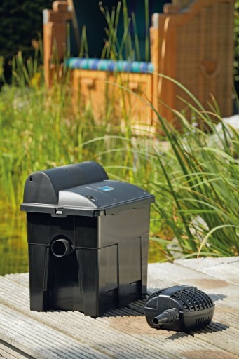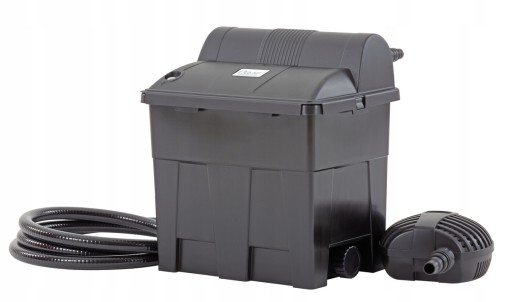 Wydajny filtr przepływowy do stawów ogrodowych i rybnych. Połączenie pianki filtrującej i zintegrowanej lampy UVC zapewnia najlepszą wydajność filtra: Różne gąbki filtrujące zapewniają optymalną filtrację mechaniczną i biologiczną. Na potrzeby czyszczenia filtr przepływowy posiada dźwignie do wyciskania zanieczyszczeń z gąbek filtrujących, a także spust dolny i przyłącze do płukania.
