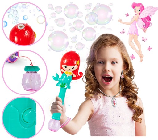 Bańki mydlane to ulubiona zabawa małych i dużych dzieci. Rewelacyjny pistolet do robienia baniek mydlanych w kształcie małej, czerwonowłosej syrenki zapewni mnóstwo radości każdemu dziecku. Podziwiaj szybujące w powietrzu dziesiątki tęczowych baniek mydlanych.
