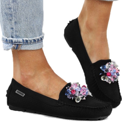 Czarne mokasyny zamsz ażurowe kamienie HH707 r.38
