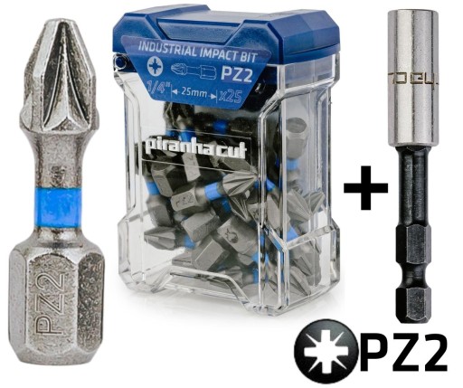 Końcówki udarowe do wkrętarki udarowej PZ2 25mm 1/4" PIRANHACUT - 1 sztuka
