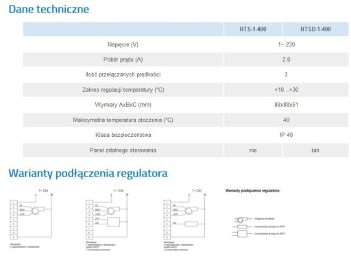 - - model RTSD-1-400 jest wyposażony w pilot,