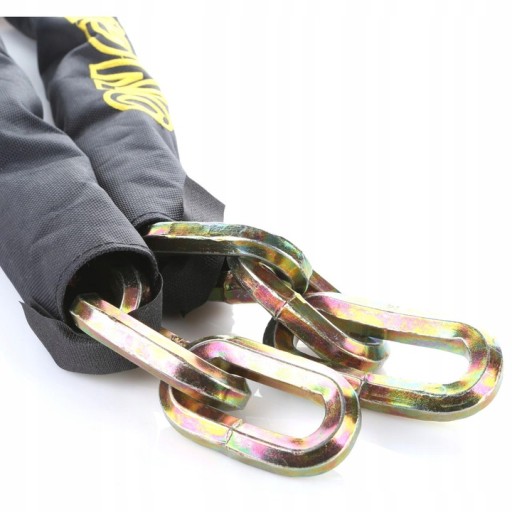 Łańcuch zbudowany z 10 mm ogniw ze stali hartowanej, utwardzanych tytanem połączonych z mechanizmem blokującym X2P. Podwójnie gumowana powłoka zamka pozwala na wygodny uchwyt i ochronę przed uderzeniami i obtarciami.