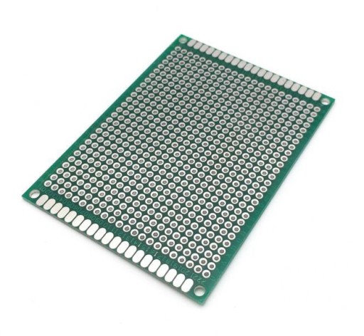 Dwustronna płytka uniwersalna z wysokiej jakości laminatu FR-4 o grubości 1,6mm. Na płytce uniwersalnej w łatwy sposób zmontujemy i rozmontujemy dowolny układ elektroniczny, bez konieczności projektowania, trawienia, zamawiania dedykowanej PCB. Idealnie nadaje się do tworzenia układów elektrycznych, elektronicznych, prototypów przy wykorzystaniu elementów przewlekanych (THT).