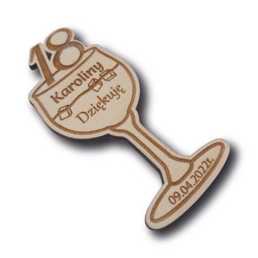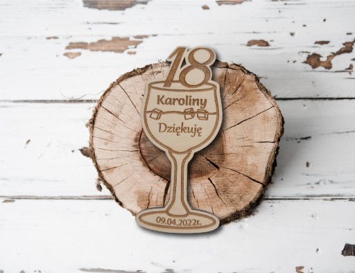 Podziękowanie dla gości za przybycie na imprezę z okazji 18 urodzin Miłym gestem jest podziękować gościom za przybycie na uroczystość , malutkim podarunkiem , który uwieczni piękną chwilę, a drewniany magnes będzie zawsze przypominał uroczystość.