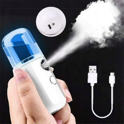 Nawilżacz do twarzy wykorzystuje technologię rozbijania struktur wody na maleńkie cząsteczki.