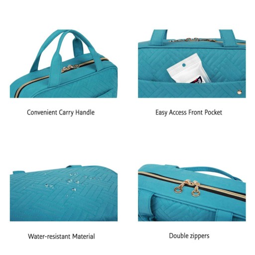 Женская дорожная косметичка бирюзового цвета большой вместительности.