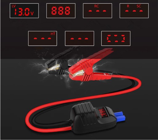 - Ekran LCD do odczytania, łatwy do odczytania stan zasilania rozrusznika.