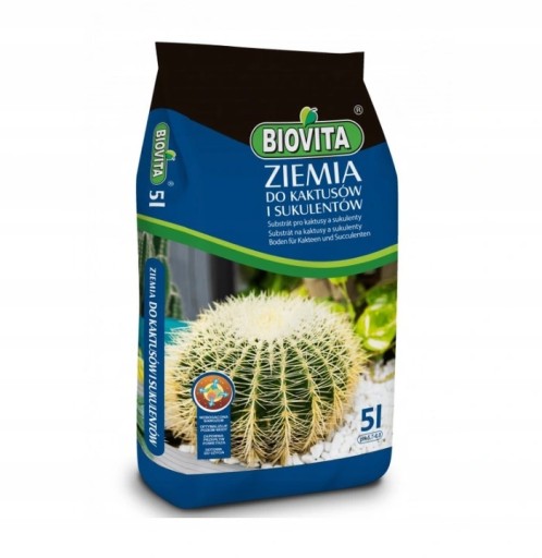 Ziemia do kaktusów i sukulentów 5L Biovita to specjalistyczne podłoże przygotowane z myślą o sadzeniu i przesadzaniu kaktusów i innych sukulentów.