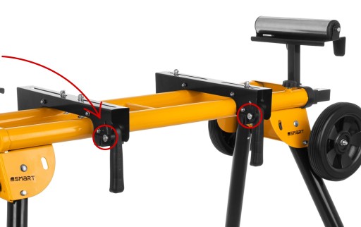 W celu maksymalnego zwiększenia bezpieczeństwa podczas korzystania ze stołu, zastosowano przyciski odblokowujące możliwość zmieniania rozstawu konsoli montażowych. Po zwolnieniu blokady możliwe jest zdemontowanie konsol.