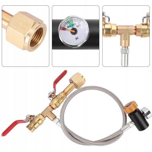 Podwójny adapter węża do napełniania CO2 z manometrem 3000 psi do zbiornika Sodastream.