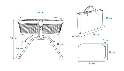 - 3 funkcje: kołyski, łóżeczka turystycznego i łóżeczka do domu