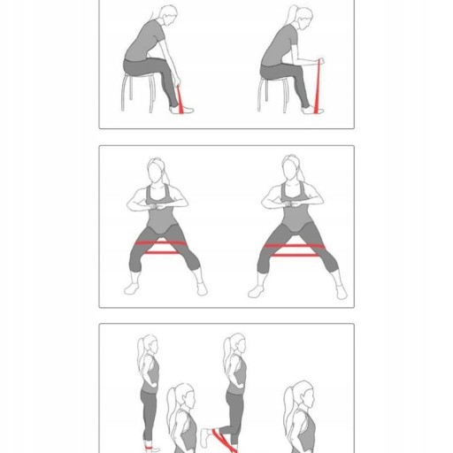 ➡️ Gumy są bardzo uniwersalne i można je wykorzystać na wiele sposobów. Na zdjęciu obok kilka przykładowych ćwiczeń do zrobienia z wykorzystaniem naszych gum.