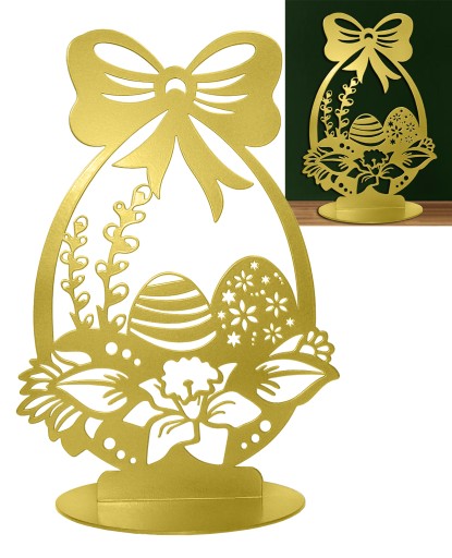 Dekoracyjny koszyczek wielkanocny wykonany z metalu malowany proszkowo na kolor złoty.