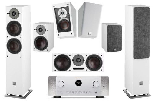 Dali Oberon kolor White/biały zestaw kina domowego 7.0 Dolby Atmos + Marantz Cinema 60 sieciowy amplituner kina domowego 7.2 z Dolby Atmos, DTS:X, 8K Ultra HD w kolorze srebrnym.