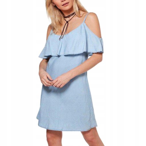 ДЖИНСОВОЕ ПЛАТЬЕ, ОТКРЫТОЕ ПЛЕЧО, бретели, xs, 24h