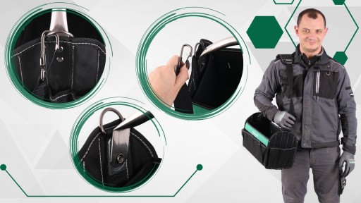- ✅Torba posiada ruchomą rączkę, którą można przełożyć tak, aby ułatwić sobie dostęp do narzędzi podczas pracy