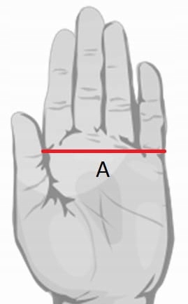 - szerokość dłoni dziecka (A): około 6,5 - 7 cm