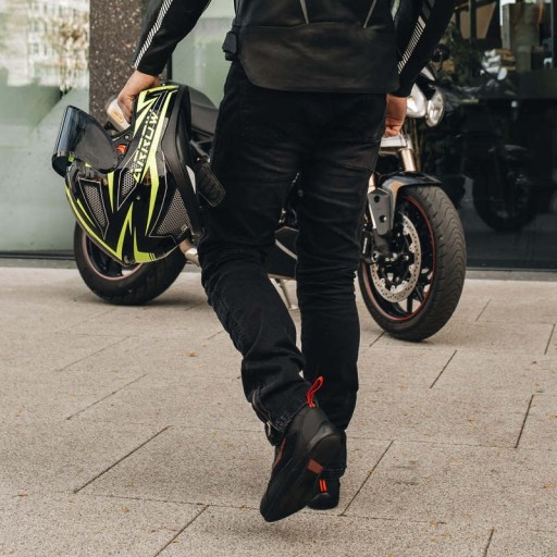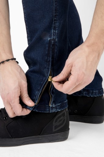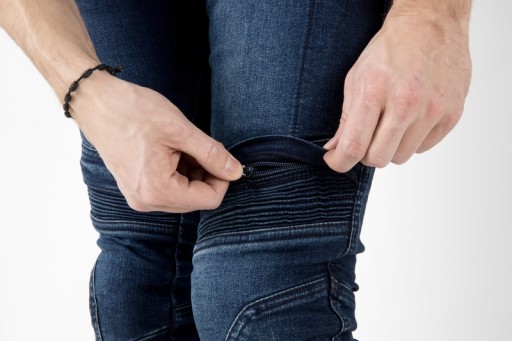 Motocyklowe spodnie jeansowe Hornet mają wyjmowane ochraniacze kolan CE Level 2. Kieszenie na biodrach umożliwiają dołożenie ochraniaczy. Elastyczne wstawki nad kolanami dają swobodę ruchów. Długie zamki umożliwiają łatwe wkładanie i zdejmowanie spodni. Spodni uszyte w kroju slim. MATERIAŁ